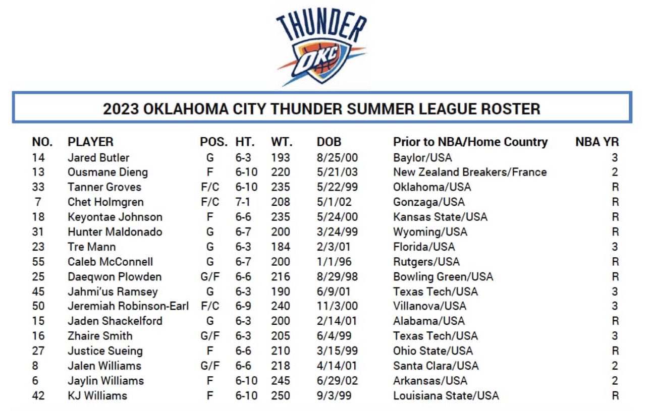 OKC THUNDER on Twitter "Thunder Announces 2023 Summer League Roster 🔗
