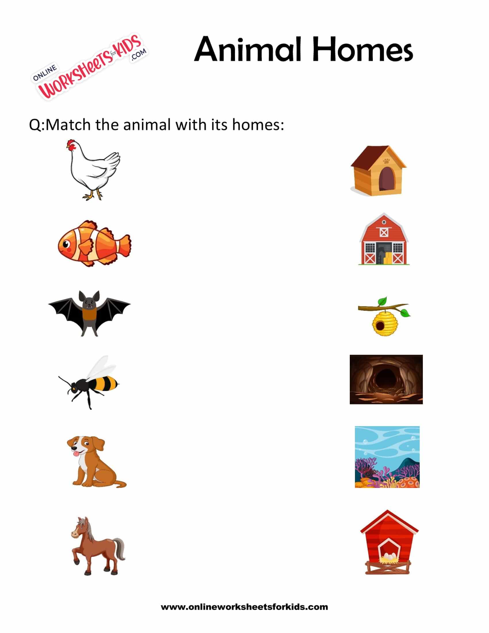 Students are exposed to the variety of places animals call home. Grab our free homes of animals worksheets, where children practice identifying, drawing, and writing the names of places different animals live in. A bat) with their home (e.g. What houses do animals make? Children are curious, and their questions about life around them are unending.