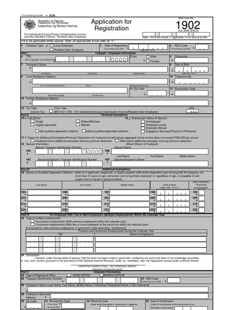 Bir 1902 Form - The bir website also serves as the gateway to all bir electronic services (i.e. Electronic filing and payment system, ebirforms, etc.) that were. January 2000 ( encs ) application for registration republika ng pilipinas kagawaran ng pananalapi kawanihan ng rentas internas.