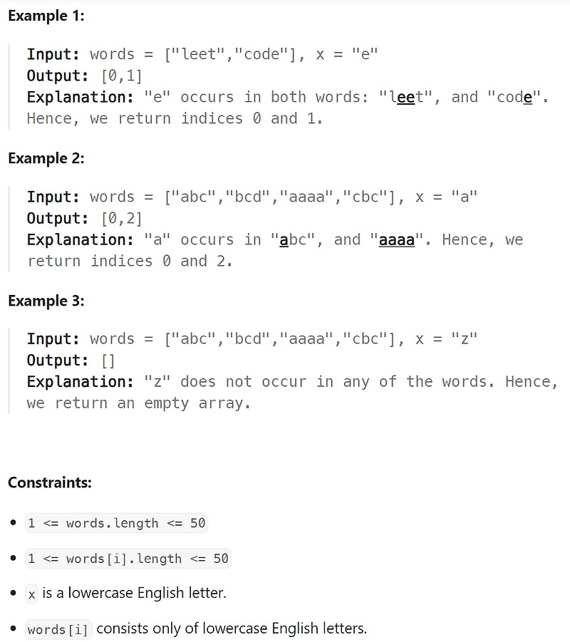 99클럽 코테 스터디 18일차 2942. Find Words Containing Character