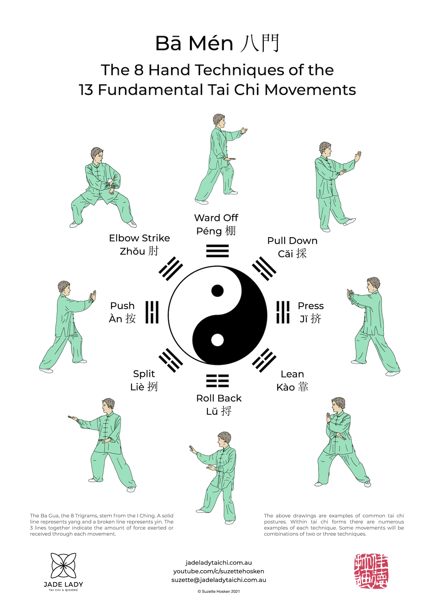 Tai Chi 24 form moves in Chinese, Pinyin, English & 4 other languages