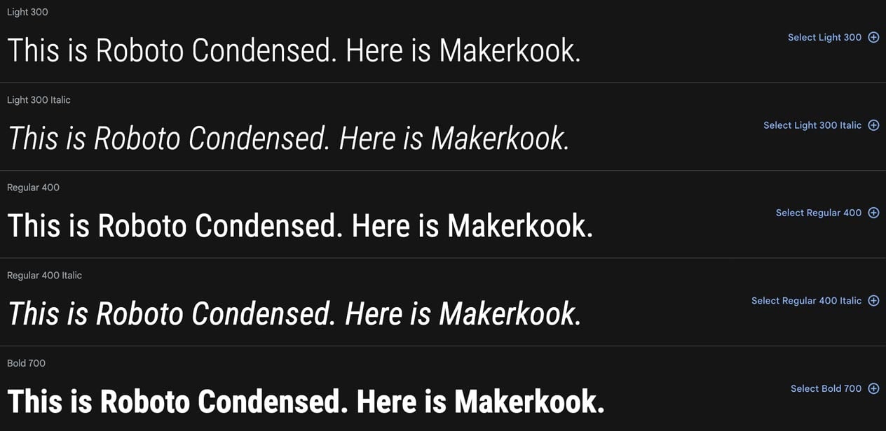 Google Fonts Roboto Condensed