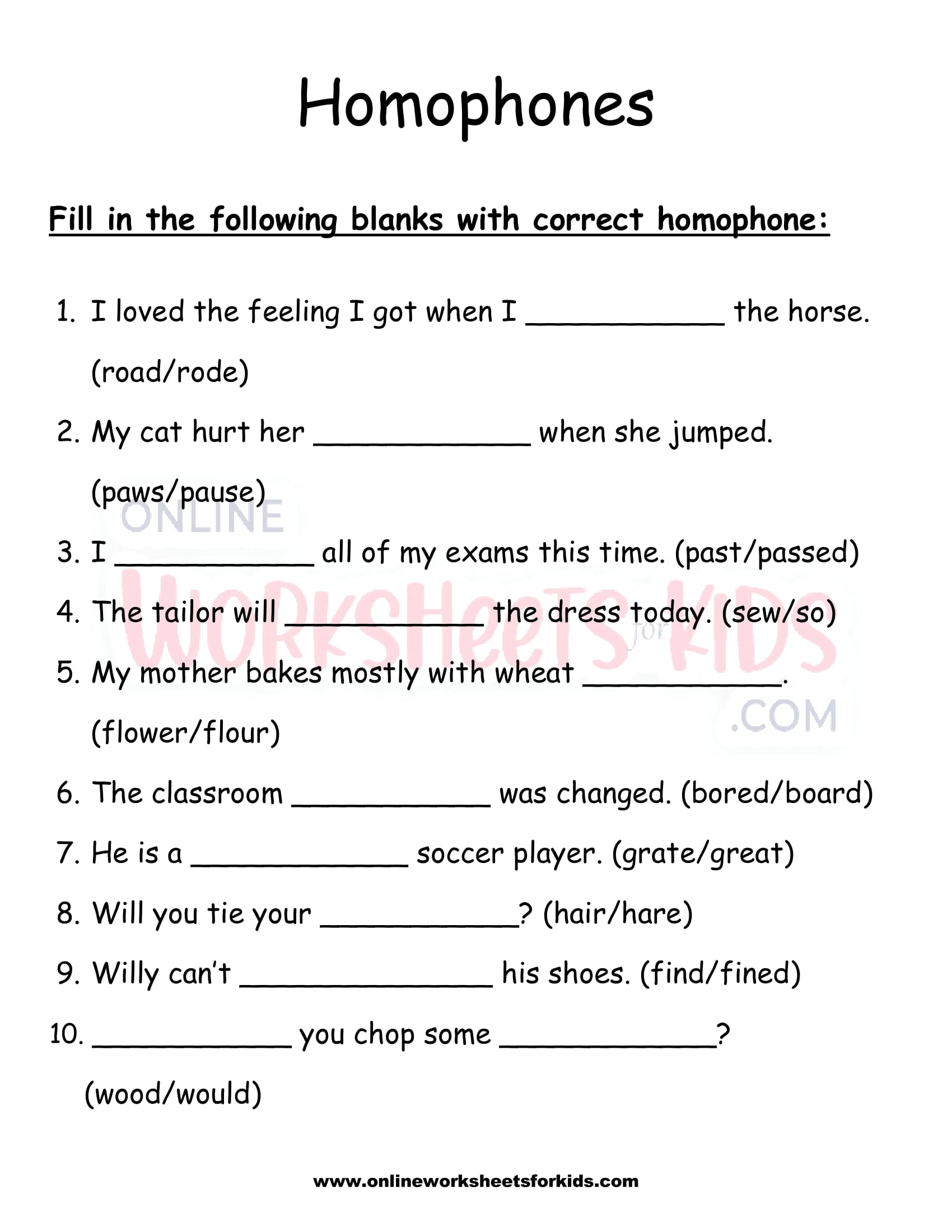 Homophones Worksheet 3