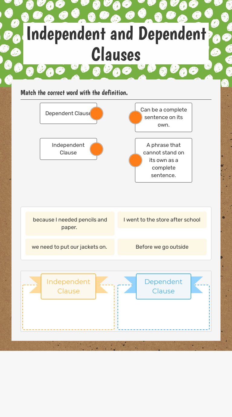 Independent and Dependent Clauses Interactive Worksheet by Elizabeth