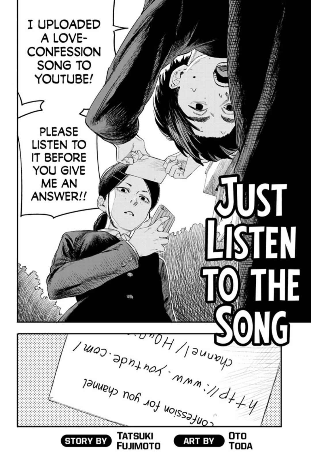 Just Listen To This Song Manga - Just listen to the song a sincere love confession video goes wrong in the most unexpected way! Futsuu ni kiite kure, just listen to the song, tatsuki fujimoto, oto toda, oneshot, manga, shounen, comedy, mystery, romance.