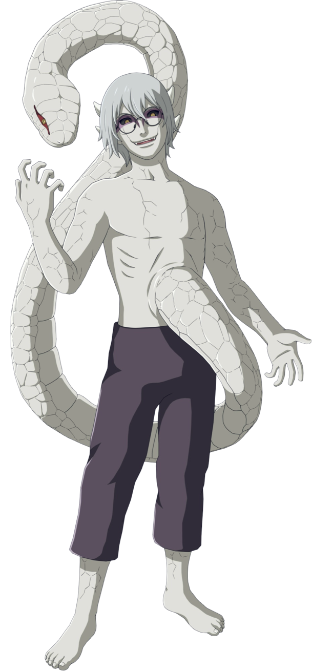 In the anime, kabuto developed clone snakes using orochimaru's dna. Kabuto can also shed his skin to turn into a snake with arms, similar to orochimaru's true form, where he can move faster and even swallow. Kabuto attempts to bite yamato in his snake form. Snakes (蛇, hebi), also known as kyodaija (巨大蛇, literally meaning: Giant snakes), are residents of.