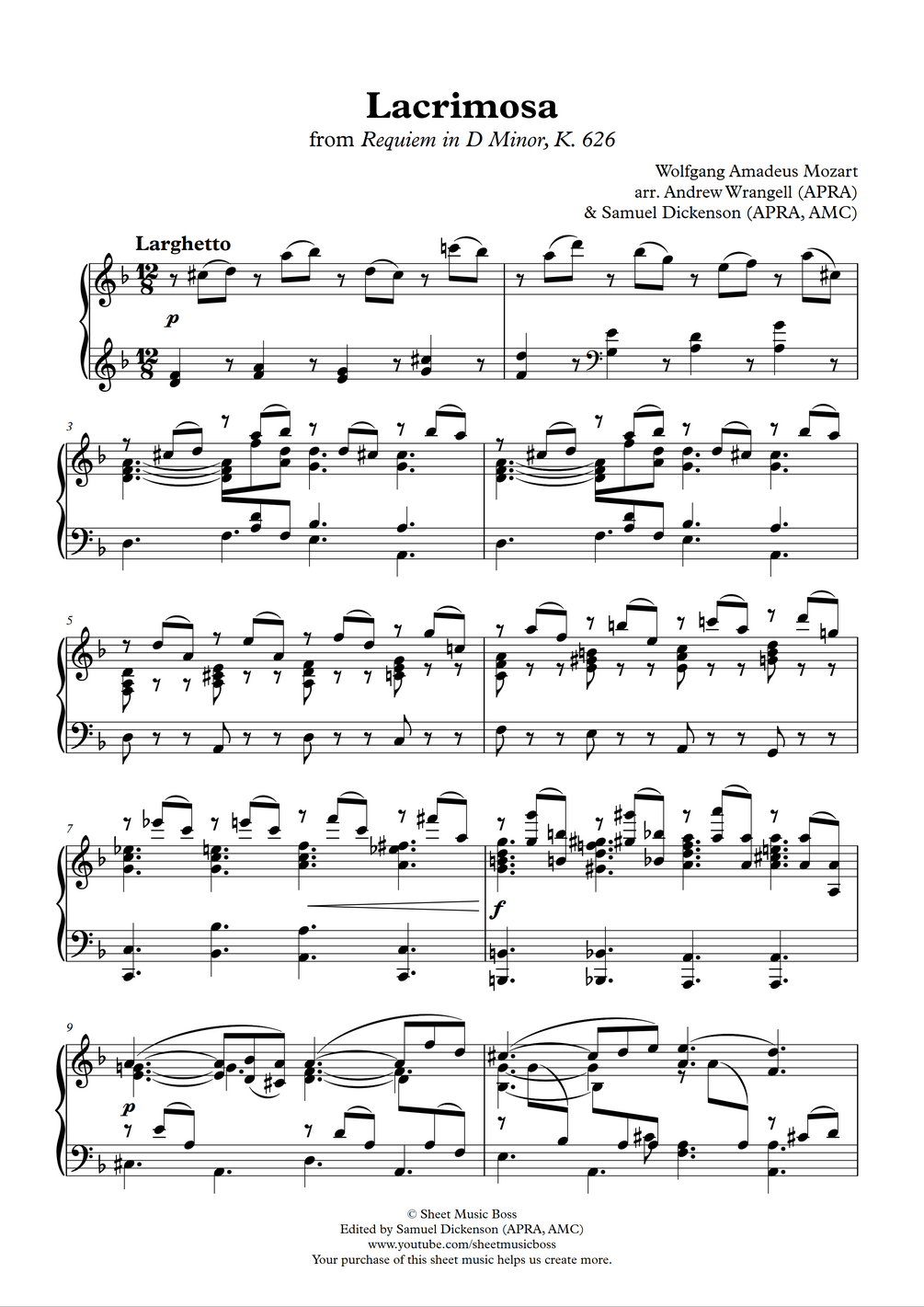Lacrimosa Mozart Sheet Music - Larghetto 4 7 10 13 1 lacrimosa dies illa. He composed over 600 works, many.
