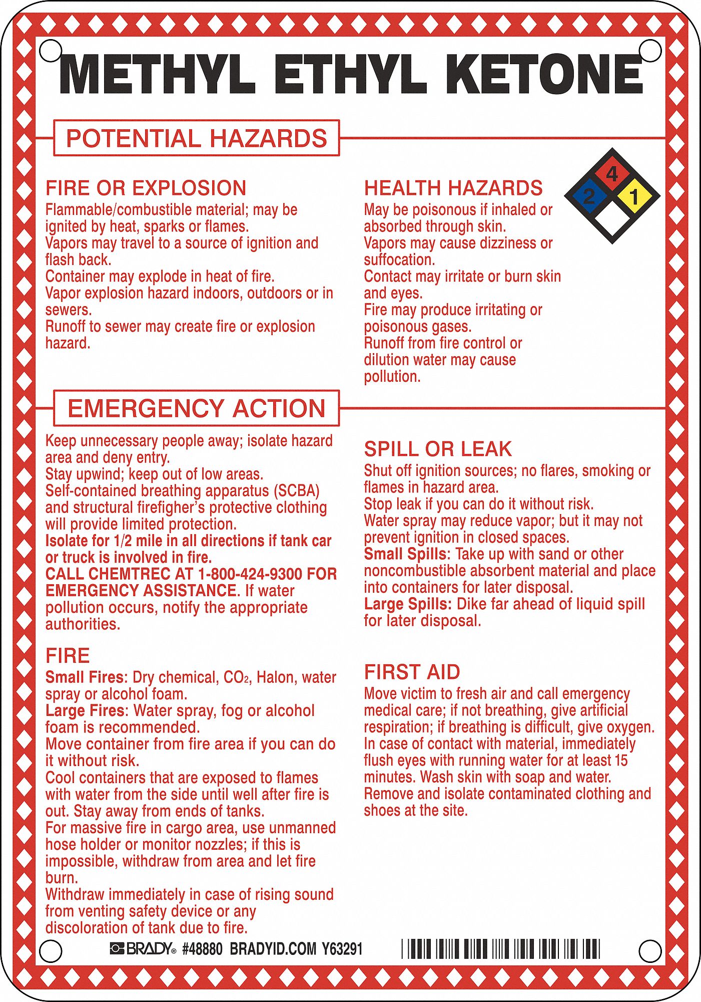 BRADY Chemical Sign Methyl Ethyl Ketone Potential Hazards, Fiberglass