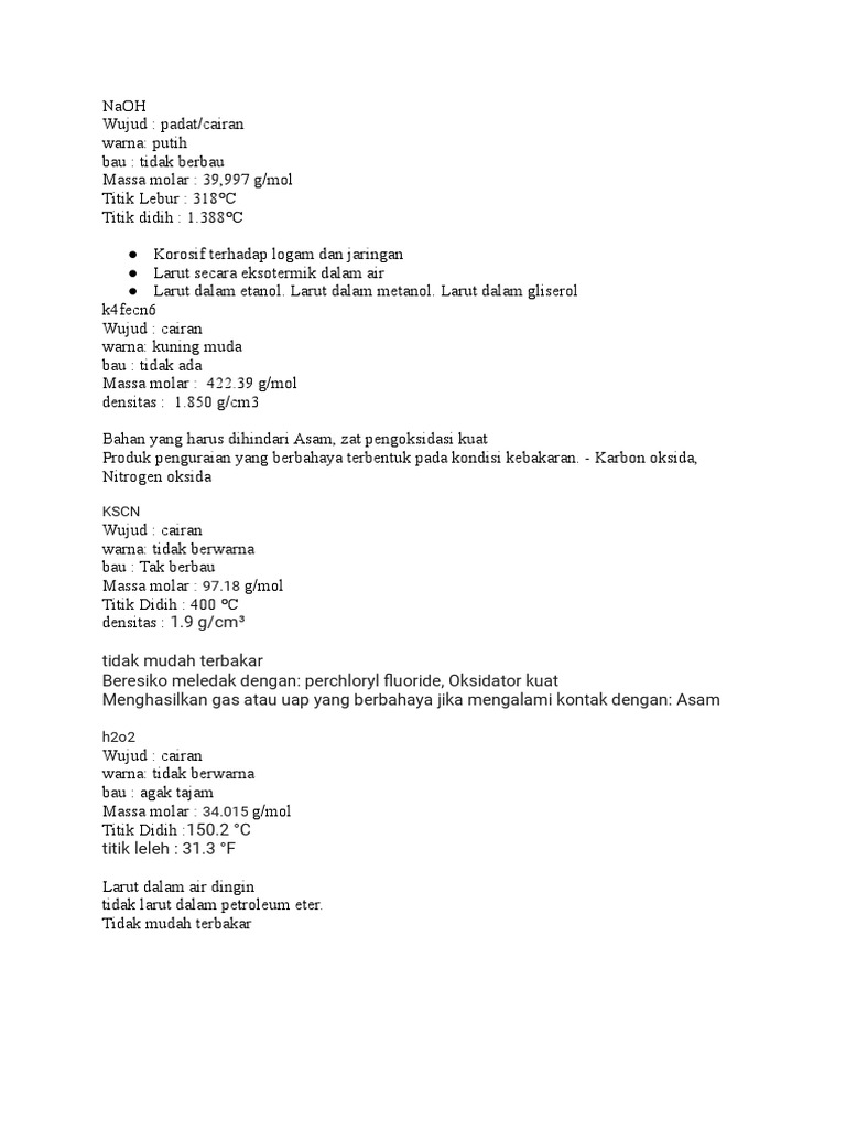 MSDS NaOH, H2O2, K4Fe (CN) 6 PDF
