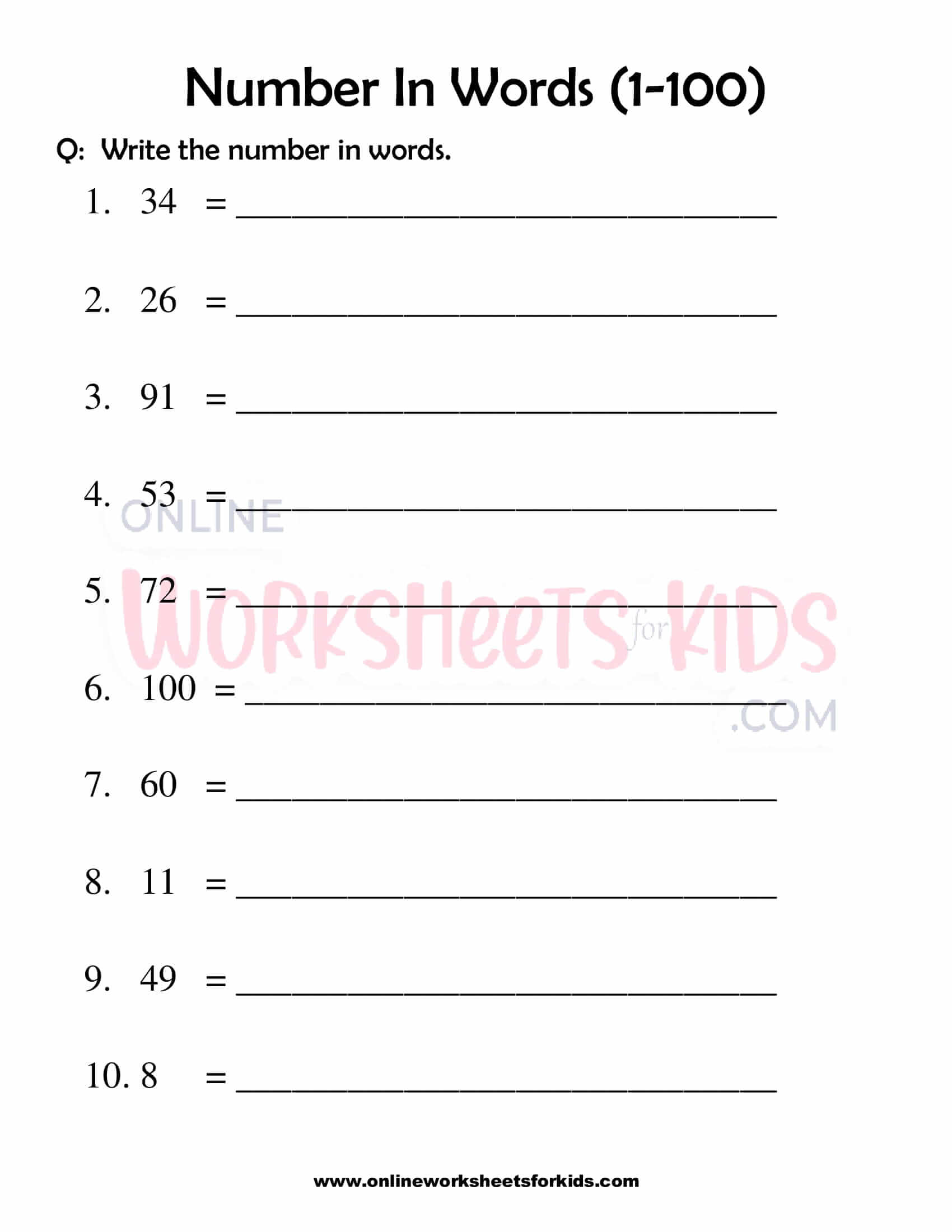 Number Words Worksheet 1 100 - Our grade 1 spelling worksheets are all about writing number words up to 100. Explore all of our learning numbers worksheets (recognizing and printing numbers), counting worksheets (counting objects, skip counting,. The whole number worksheets include counting numbers.