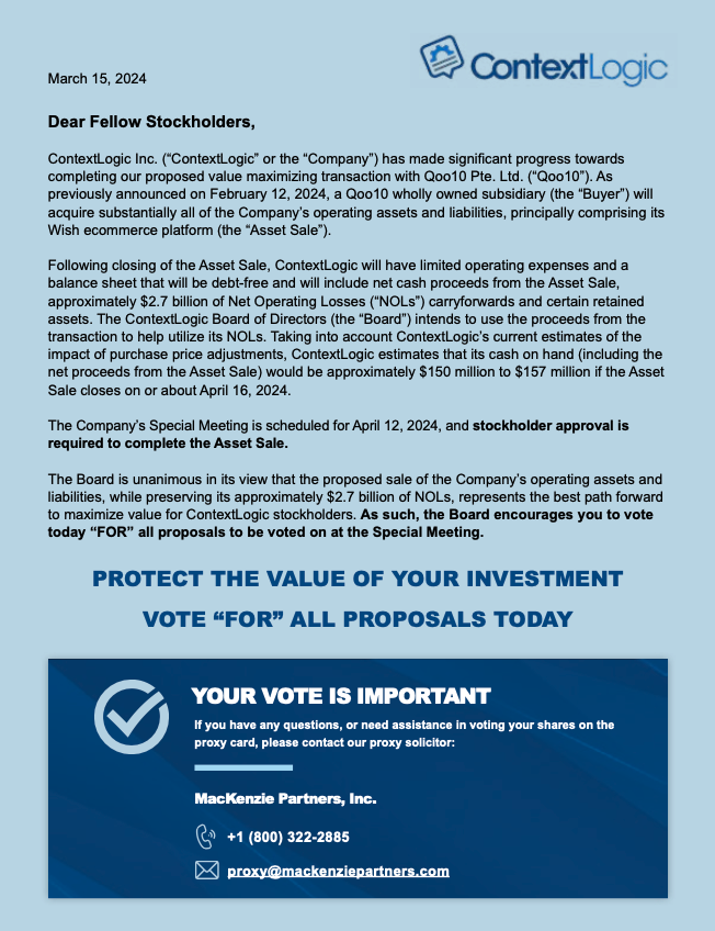 ContextLogic Files Definitive Proxy Statement Regarding