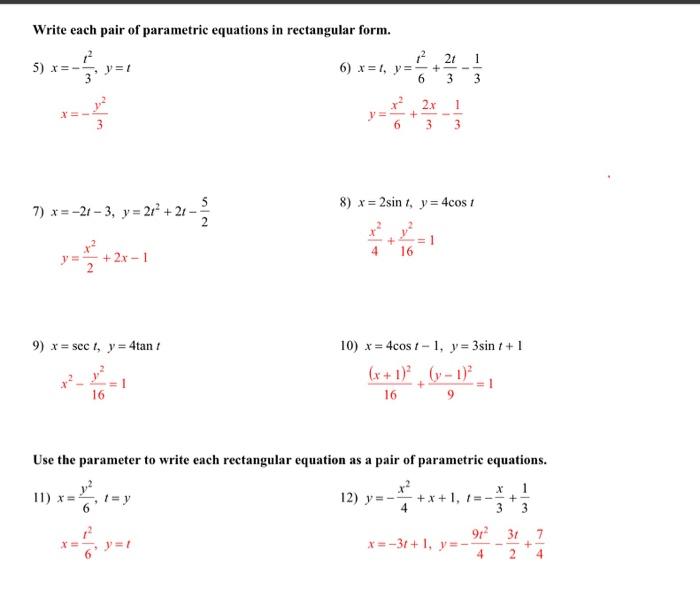 This section introduces parametric equations, where two separate equations define \(x\) and \(y\) as functions of a third variable, usually. Convert a given pair of parametric equations into rectangular form and then sketch its graph. In this lesson, we will learn how to convert from the.