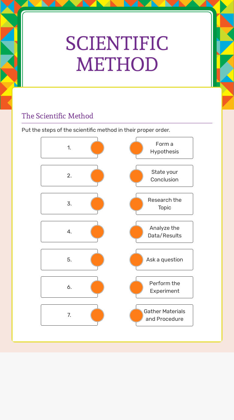 Scientific method is a series of steps that a scientist follows to analyze and answer a question about a specific observation. Identify the iv, dv and write a hypothesis for the following questions. Put the following steps of scientific inquiry in order,. Put the following steps in order, please number 1‐6.