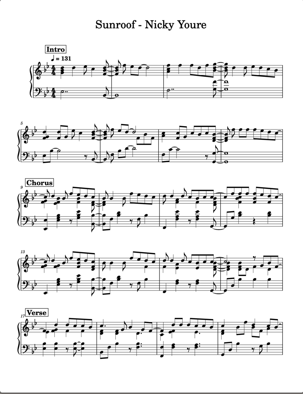 Nicky Youre & dazy "Sunroof" Sheet Music & Chords Download 6Page