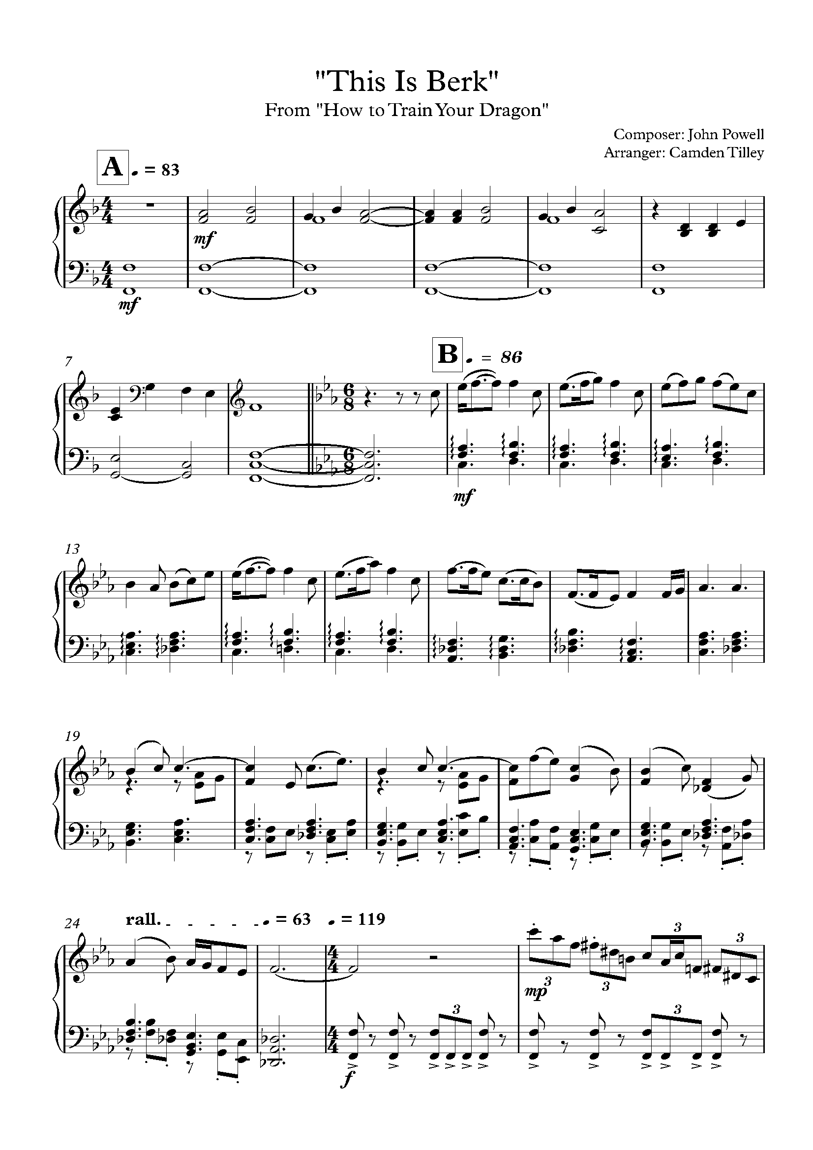 Instrumental solo in f major. This is berk (from how to train your dragon) for piano solo, easy piano sheet music. Browse our 6 arrangements of this is berk. sheet music is available for piano, guitar, french horn 1 and 5 others with 4 scorings and 1 notation in 3 genres. Find your perfect arrangement and.
