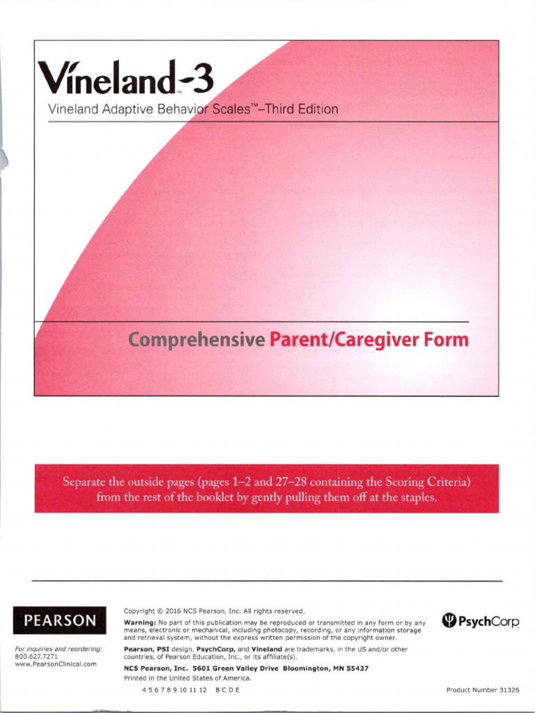 Vineland 3 Parent Caregiver Form Pdf - Designed for individuals aged zero to.
