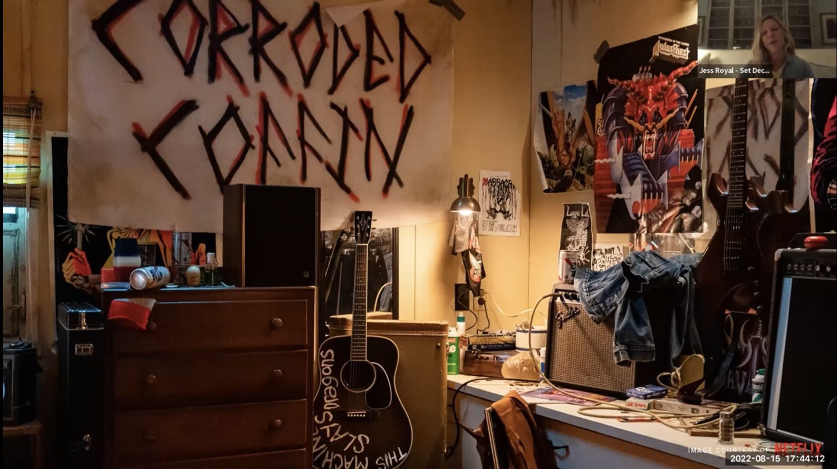 The stains on his bed from bed. If you’re a fan of stranger things, then you know that one of the key elements to the show is the eerie, unexplained stains on eddie’s bed. Then of coarse the “eddie lives” on the album, and then how he mentions feeling like he’s losing his mind all the time. I don’t know.