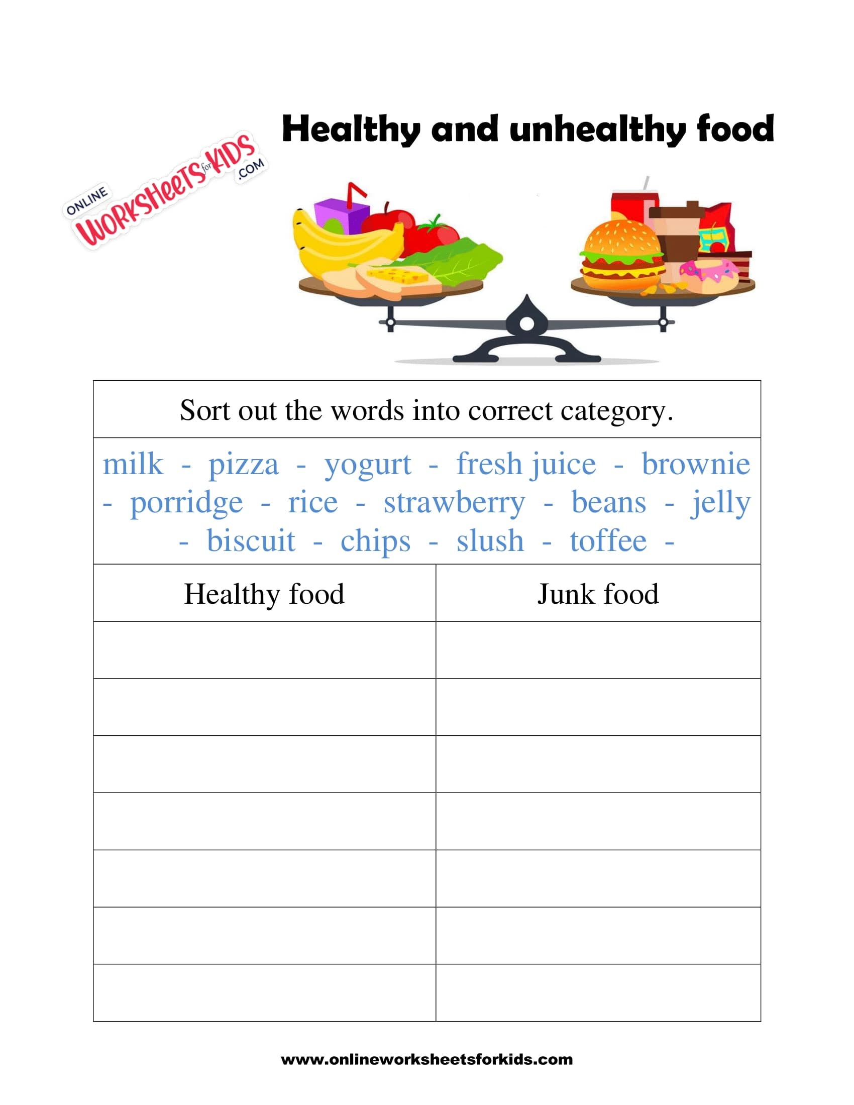 Worksheets On Healthy And Unhealthy Food